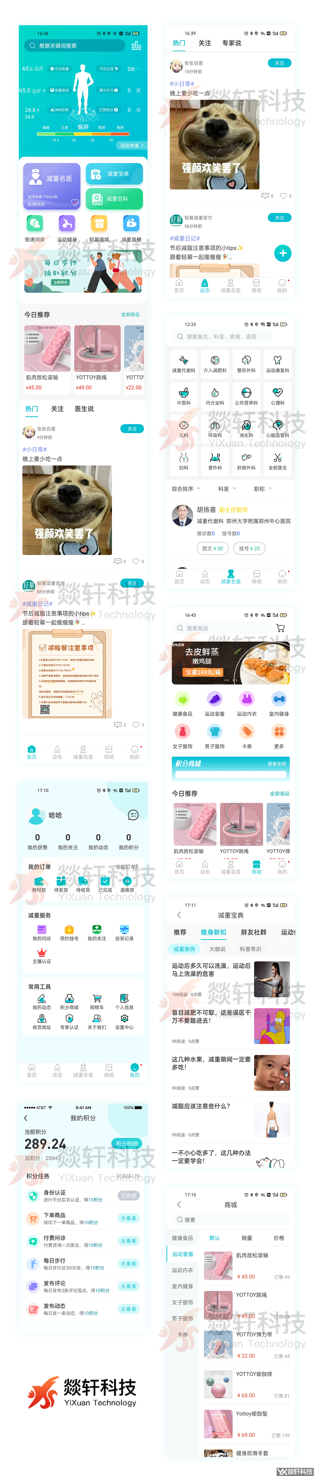 功能:記錄體重、專家問診、健身指導、商城、減重直播、社交